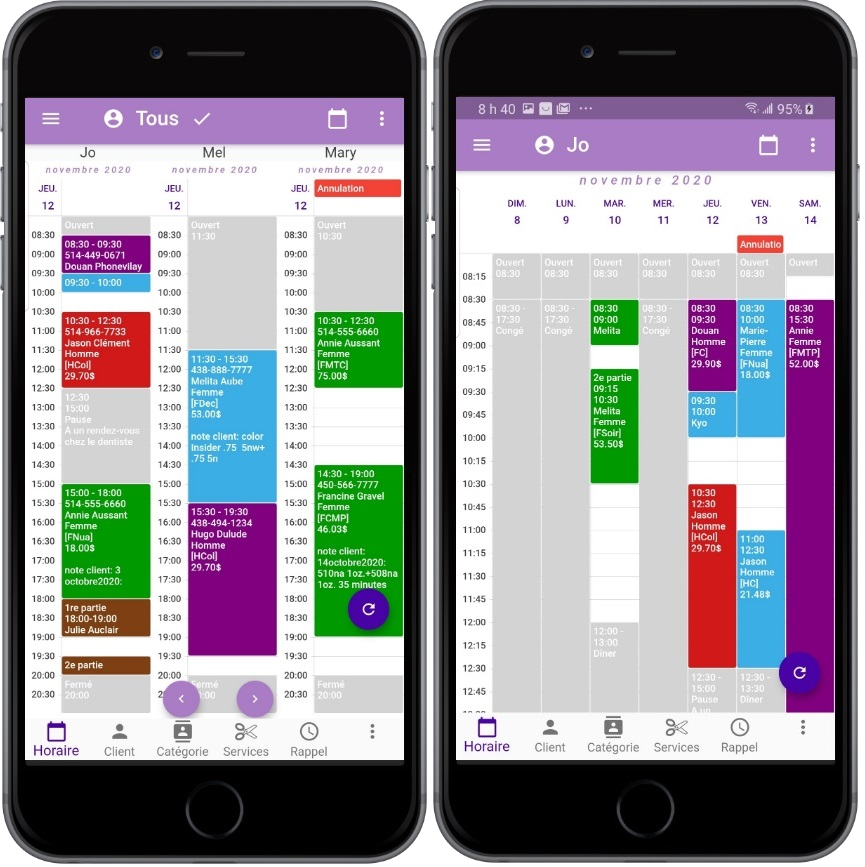 Divamo Mobile est conçu pour 2 situations: Pour un travailleur autonome qui a besoin d'un outil efficace pour la gestion des RDV, ou en complément de Divamo Bureau pour les employés et/ou les propriétaires du salon. Avec la puissance d'une application mobile, les travailleurs peuvent consulter leur horaire de n'importe où. Divamo Mobile permet aussi d'effectuer rapidement plusieurs tâches avant, pendant et après chaque soins.